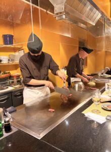 鉄板焼きの醍醐味といえば、やはり目の前で繰り広げられる調理のライブ感です。プリプリのエビ、ジューシーな牛肉、そして〆のチャーハン、次々と鮮やかに焼き上げられていく様子はカウンター席での楽しみの大きな要素です。カウンター席の方にお願いして、後ろから動画を撮らせていただきましたが、その職人技に見入ってしまい、気づけば延々と撮り続けてしまいました。スタッフの皆さんの安心感のある丁寧なご案内もあり、最高に居心地の良い時間を過ごすことができました。